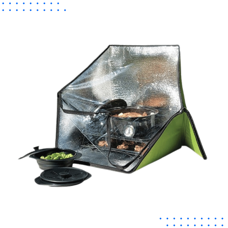 This solar cooker is a great option for anyone who loves sustainable living and outdoor adventures. Safe, portable, and powerful enough to cook full meals, it’s perfect for eco-conscious campers and hikers.